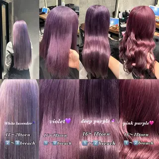 💜menu💜《ロング料金》肩まで¥550鎖骨¥1100胸¥1650それ以上¥2200〜《ケアブリーチの効果》⭐︎毛髪内部補強⭐︎仕上がりの質感upカラー料金➕¥1100で髪の毛の手触りをよくし艶やかになる《マグネットカラー》に変更可能です☺︎《マグネットカラーの効果》⭐︎毛髪内の潤いが持続⭐︎熱ダメージから髪を守る⭐︎キューティクルを補修し艶やかな髪に!!⭐︎毛髪強度ハリコシup⭐︎ダメージ軽減⭐︎発色、色持ちupデザインカラーは+¥1100かかります。