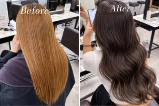 ニュアンスカラー、デザインカラー、グランジ、ちょっと平成ぽい雰囲気など作るのが得意です👡ニュアンスカラー、ナチュラルグランジ、平成感のあるスタイルが得意です🎼繊細な技術を必要とするブリーチワークやハイトーンカラーを、リーズナブルな価格で高クオリティにご提供させていただきます!🐋綺麗な髪色を作るには、複雑履歴(パーマ、縮毛矯正、黒染め)がないことが一番理想なのですが、複雑履歴があっても、ケアしながら施術をすればブリーチができたり、残留を活かしながらデザインを入れたりなど、可愛いヘアスタイルができます⭕️是非一度お任せください🪽お帰りの際に次回のご予約をお取りしていただくと、次回予約割引¥1000offに...