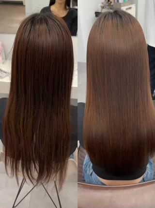 髪が綺麗にみえる暗髪【透明感・艶カラー🎀】1bleach〜できる肌なじみの良い【ハイトーンカラー🫧】しっかり癖を伸ばす【縮毛矯正ストレート🪽】