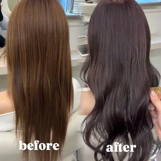 【艶髪×透明感】で“今がいちばん綺麗”を更新します「似合うかわからない」「派手にはしたくない」そんな不安がある方ほど、ぜひお任せください。一人ひとりの✔︎肌色✔︎髪質✔︎雰囲気✔︎ライフスタイルに合わせて、無理なく・自然に垢抜けるスタイルをご提案します。ワンカラーでも赤みを抑え、光に透けるような透明感と艶を引き出すのが得意です◎職場や学校でも浮かず、「褒められる」「扱いやすい」髪を目指します。うねり・広がり・ダメージが気になる方には中性ストレート/縮毛矯正/酸熱トリートメントで毎朝ラクになる髪質改善もお任せください。「指...