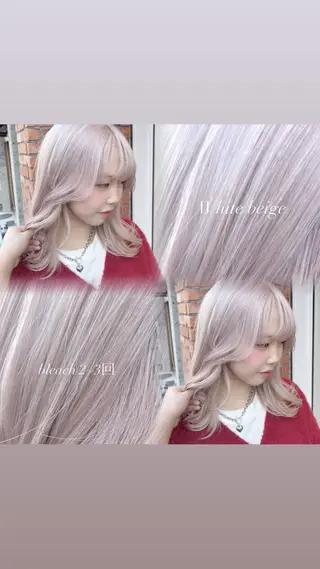 こんにちは!vancouncil金山スタイリストのサチです👼🏻🤍数あるサロンの中からご覧いただき、本当にありがとうございます!ブリーチカラー・透明感カラーはぜひお任せください🫧✨赤みや黄みをしっかり抑えた、やわらかくて抜け感のあるカラーが得意です◎ただ明るくするだけではなく、色落ちまで可愛く楽しめるように計算してカラーを作っています。ダブルカラーやくすみ系カラー、ミルクティー・グレージュ・韓国風カラーなども大人気♪「透明感がほしい」「垢抜けたい」「今っぽい雰囲気にしたい」など、ふわっとしたイメージでも大丈夫です◎お...