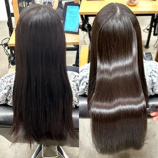 【🤍1回で綺麗になる髪質改善×縮毛矯正🤍】無理に真っ直ぐすぎる仕上がりにせず、髪の履歴やダメージをしっかり見極めて、自然で柔らかなツヤ髪に仕上げます🫧ドライヤーだけでもまとまるから、頭もちっちゃくなって一日中下ろしていても綺麗が続きます🧴\こんなお悩みの方におすすめ/✔️縮毛矯正、ストレートしたいけど傷みがきになる✔️表面の髪がふわふわする✔️アイロンをしないと髪に艶が出ない✔️髪の絡まり、引っかかり、パサつきに悩んでる✔️小顔にみせたい、華奢感が欲しい髪の履歴、ダメージを無視して無理に縮毛矯正、ストレートをあてることはあ...