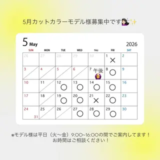 🙇🏻技術向上の為カラーモデル様を募集しています!⚠️お客様としてご来店された事がある方はお断りさせていただいています!あらかじめご了承下さい!気になる方は是非宜しくお願い致します🙇🏻お支払いは現金のみとなります!クレジット、paypay等は使用できないのでご注意ください!当日の予約状況で早めにご案内できる場合もありますその場合は、ご連絡差し上げてご案内を提案させていただきます!⚠️ご予約時間から20分を過ぎますとキャンセルになりますのでご注意ください。ご予約時間に遅れそうな場合はご連絡頂けると助かります!前髪カット、整えカットも+¥1100で募集していますカットもご希望の方はDMでご相談お待ちしています!🆖黒染め、グレイカラー(白髪染め)、ハイライト、バレイヤージュ、グラデーションカラーはお断...