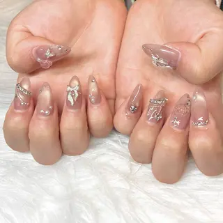 全メニューオフ込み💕付替えオフ料金はずっと無料🌸当日予約🆗 キラキラ韓国ネイル🇰🇷💕カラー300色以上💗可愛い大きいパーツ1500種💗長さだし持ち込みデザイン大歓迎、パラジェルあり