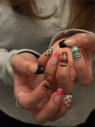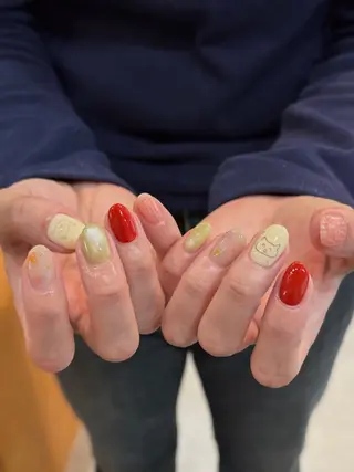 閲覧いただきありがとうございます🌼オプションにて下記メニューも追加可能です♪《ワンカラー》ニュアンスワンカラープラス300円《カラーグラデーション》ラメ散らしプラス300円《ワンカラー/フレンチ/グラデーション》カラーミキシングプラス300円《オーロラ/ミラー》ベースの上にオーロラ/ミラーがけ1本につきプラス100円カラーの上にオーロラ/ミラーがけ1本につきプラス150円《全メニュー対応》時間内パーツつけ放題プラス900円【オフ🌼2回目以降のお客様】付け替え自店オフ1本につき150円付け替え他店様オフ1本につき2...