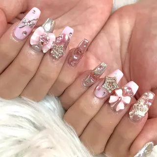 持ち込みデザイン大歓迎😊💓爪に優しいマシーンでオフ🥰シンプルからアートまで何でもご相談ください💅繊細なアート、ニュアンスネイルが得意です🌷満足いくまで一緒にネイルを楽しましょう💅ノンアセトンでオフも🆗🙆♀️お肌の弱い方、爪が薄い方はご相談下さい💜3Dパーツイラスト等は1週間前に要望お受けいたします。キャラクター、イラスト等は前持ってシールに描き当日お爪に貼り付けますので1週間前にお申し付けください。⚠️イラスト、3Dパーツはプラス料金