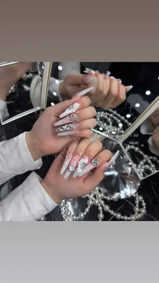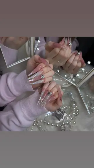 トレンドネイルやロングネイルにパーツをふんだんに使用したデザインを得意としております。スタッフは外国籍ではございますが、ご要望を丁寧にお伺いし、真心を込めてご対応させていただきます。