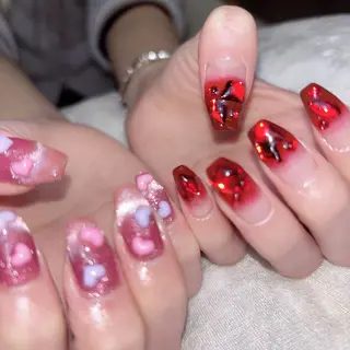 トレンドネイルやロングネイルにパーツをふんだんに使用したデザインを得意としております。スタッフは外国籍ではございますが、ご要望を丁寧にお伺いし、真心を込めてご対応させていただきます。