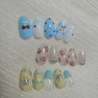 見つけてくださってありがとうございます💖お気に入り登録して頂けますと💌メッセージのやり取り可能です丁寧なケアと綺麗な仕上がり💅ハッピー💕をお届けしたいです💗画像イメージ持ち込み等🆗ご希望のデザインや画像がございましたら送っていただけると幸いです。勿論来店されてからのデザインのご相談も🙆♀️オプションについて○オフ込みはソフトジェルのみ○立体パーツオフ+200円/個○チップスカルプフィルイン+500円○チップスカルプ付け替えオフ+1000円○チップ長さ出し+800円/本○アクリル補強+500円/本○パラジェル追加+10...
