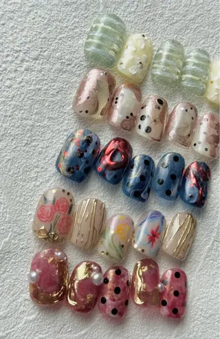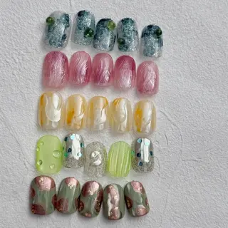 初めまして(*^^*)ゆったりとした時間の中でお好きなデザインのネイルが楽しめます。今までやりたくてもお値段などの関係でできなかったデザインなど、お手軽な価格で施術させていただいております。カラー100色以上、パーツ、ストーン100種類以上、レアなシールや押し花、ワイヤー、ミラー、天然石、ホログラムなどなど、トレンドデザインに必需品が揃っています。シンプルジェル4000円ジェルなんでも付け放題6000円ジェルなんでも付け放題+α7000円スカルプ長さ出し+ジェルなんでもやりたい放題9000円補強1本300円スカル...