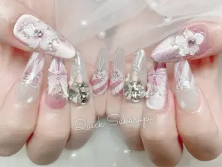 全メニューオフ込み💕付替えオフ料金はずっと無料🌸当日予約🆗 キラキラ韓国ネイル🇰🇷💕カラー300色以上💗可愛い大きいパーツ1500種💗長さだし持ち込みデザイン大歓迎、パラジェルあり