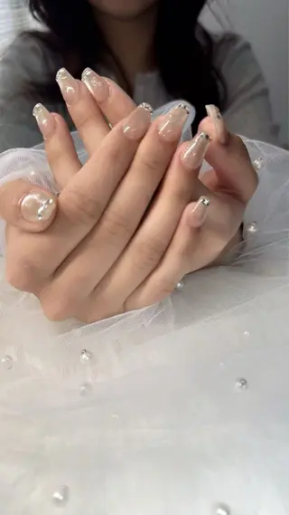 韓国風/ワンホンネイル/お任せてください❣️)ジェルオフ無料❤️🔥スカルプでしっかりアートを楽しみたい方にオススメ💘我慢せずに乗せたいパーツを全部乗せ