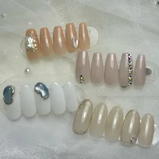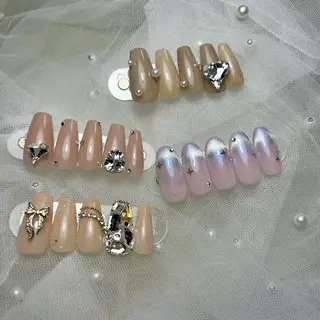 割引料金でのご案内をしております💖当日予約可能ですが、同時刻でホットペッパーの予約が入った場合そちらが優先になりますので予約が重なった際はご連絡致します。ご了承下さい。🎀初回ソフトジェルオフ無料※スカルプオフは¥1650※2回目以降ソフトジェルオフ+1100円チップ長さだし(1本)1100円アクリル補強(1本)550円フラッシュ、ミラー、マグネット+1100円パーツ別途料金例:デカパーツ550〜🤍ベースジェル・パラジェル+1,100円・バイオジェル+550円追加可能です🪄