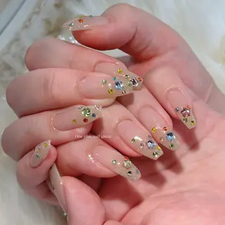 SNSで話題のワンホン・トレンド・個性派ネイルなど様々なデザインを実現します★豊富なカラー、こだわりのパーツで美フォルム形成!◎爪をいたわるフィルイン施術なのでネイルが初めての方でも安心です~🥰⭐⭐⭐ご予約の際に、オフの有無、亀裂の有無、長さ出しを希望され場合の本数など、お知らせください。⭐⭐⭐各料金は以下の通りです。★チップ長さだしオフは330円/本、再利用330円/本。3Dパーツ、埋め尽くし、アートパーツ、大きいパーツは220円/本。補強は550円/本、長さだしは880円/本。★【新規】フィルイン/ソフトジェルオフ¥660【再来当店】★5口コミ投稿済み及び30日以内に再来店の方(ソフトジェルオフのみ)¥0【再来自店】フィルイン/ソフトジェルオフ¥660【再来他店】フィルイン/ソフトジェルオフ¥110...