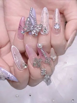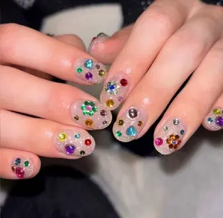 全メニューオフ込み💕付替えオフ料金はずっと無料🌸当日予約🆗 キラキラ韓国ネイル🇰🇷💕カラー300色以上💗可愛い大きいパーツ1500種💗長さだし持ち込みデザイン大歓迎、パラジェルあり