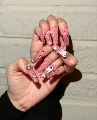 こんにちは♪CloudyChanネイルサロンです🌥️✨当店は、最新の韓国風・海外トレンドネイルを中心に、Y2K・キラキラ・量産型・地雷系など、若い世代に人気のデザインを幅広く対応しています。もちろん、大人シンプルやワンカラーも大歓迎🍒持ち込みデザインやり放題、さらにパーツ無制限付け放題(3000種以上在庫)&カラー1000色以上の圧倒的なラインナップで、理想の「かわいい♡」を叶えます✨3Dアート、キャラクターネイル、ストーン埋めつくしも得意♪推し活やイベントにもぴったりの特別ネイルをご提供します🌈お友達と一緒の来店...