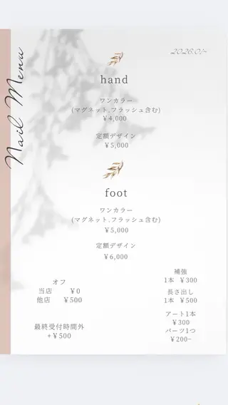 必ず注意事項をご確認よろしくお願いします。Instagram▶︎▶︎▶︎ohana_mk_n基本の予約枠は🌼平日🌼10時〜16時半(最終受付)🌼土曜🌼9時半〜17時(最終受付)日曜、祝日はお休みとさせて頂きます。受付時間外の場合もご相談下さい🎀(受付時間外の場合+¥500)施術者2名で行っております💖マグネット、フラッシュ沢山種類ご用意しております❤️🔥☆施術者2名で両手を同時に施術しますのでしっかりケア込みでの施術でも60〜90分程度で終わります❣️(オフなし、ショートネイルの方はワンカラー40分程度で終わる場合も???!...