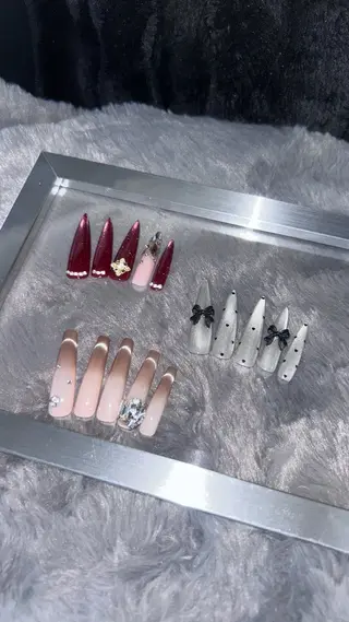 可愛いパーツ沢山ご用意しております🎀ワンホンネイル・ちゅるちゅるネイル・シンプルネイル得意です!予約枠が空いてなくても予約お取りできる場合がございます。是非予約リクエストをお送りくださいませ🎀土日祝全メニュー+500円5分以上の遅刻は500円いただいておりますのでご理解ください。また15分以上の遅刻はメニュー変更または施術をお断りする場合がございます。他の予約経路もございますので日時変更をお願いする場合がございます。ご了承いただける方のみご予約お願い致します🙇♀️チップ、スカルプオフの場合は事前にご連絡をお願いいたします。また、チップ、スカルプオフは1500円になります。当日キャンセルはキャンセル料が100%か...