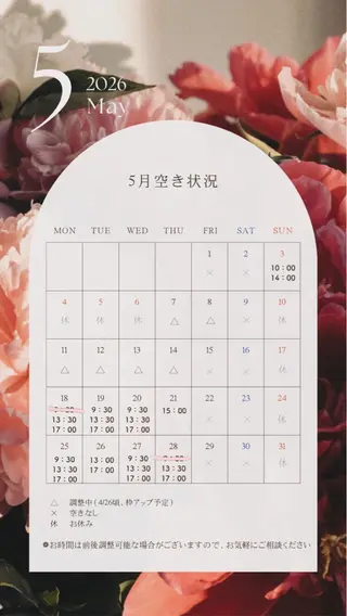 丁寧なカウンセリングと施術を心がけています💅🏻🫧お客様のお爪の状態を見ながら、綺麗に仕上がるよう施術させていただきます✨ネイルが初めての方も大歓迎です☺️ご予約お待ちしております🕊数ある掲載の中からご覧いただきありがとうございます💅🏻🫧NEWOPENのため、期間限定でOPEN価格にてご案内しております✨ちゅるんとしたワンカラーネイルや、オフィス系のシンプルで可愛いネイルが得意です🪄➰丁寧なカウンセリングと施術を心がけ、お客様にリラックスしていただける空間づくりを大切にしております☺️ネイルが初めての方や、メニューに迷われている方も大歓迎です!お気軽にご相談ください✨お気に入り登録していただくと、スムーズにメッセージのやり取りが可能になります♥️ぜひご登録よろしくお願いいたします!当日のご予約...