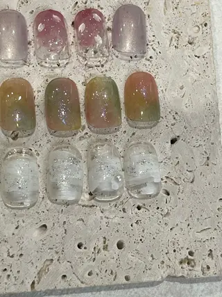 🍀こだわり☘️可愛くなりすぎないけど、可愛い!大人っぽいけど、かっこいいではない!絶妙なカラーとデザインで似合うをお届けします💪✨相談しながら決めることも、もちろんOK!納得のいくネイルに一緒に仕上げていきましょう🍒🍀空間☘️完全個室、ドリンクあり、ふかふかのソファー靴を脱いで過ごして頂きますので、お子様連れも歓迎です^_^ゆったり過ごしてもよし、お話ししてもよし(担当はお喋り大好きです笑)、動画をみて過ごされる方もいます♪ご自身の好きなスタイルでお過ごしください✨🍀メニューについて☘️✔️カラーについてオープンしたてで...