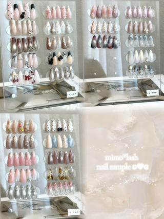 4月からご新規様ご案内再開したためミニモ始めました😊フィルイン対応!無料Pあり!マグネット、フラッシュネイル、ラメだけでも100色以上のカラー準備してます!ニュアンスネイルワンホンネイルのサンプルたくさんご用意しております🫶🏼ご要望にお答えできるよう頑張ります🔥他予約経路も利用しているためすぐ予約からのご予約の場合少しお時間変更お願いする場合がございます。長さだしなどある場合はメッセージにてお伝えください。[1本440円]ぜひご来店お待ちしております!