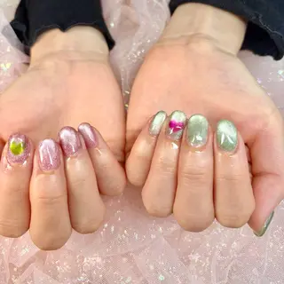 限定クーポン有り🉐当日予約歓迎✨オテテとオメメをオ可愛くしちゃうお店❤️高リピート率✨大人気マグネットネイル✨フラッシュラメ📷💥有 スカルプ長さだし可能/パラジェル変更可能