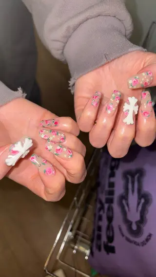 【当日割❤️🔥本日13日14:00〜22:00🈳❣️/14日10:00〜17:00🈳】当日予約OK❣️✨クロスモールドご用意あります🩶フィルイン施術🫧長さ出し/韓国/個性派/y2kネイル