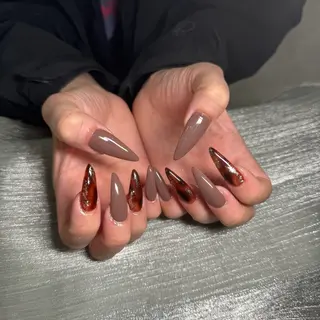 落ち着いたブラウン系カラーで、大人っぽく上品なデザインです。オフィスや日常使いにもおすすめです。数あるサロンの中からご覧いただき、誠にありがとうございます。HiyuNailでは、お客様一人ひとりに寄り添った丁寧なカウンセリングと施術を心がけております。シンプルで上品なデザインから、トレンドを取り入れたアートまで幅広く対応しております。お仕事や日常生活に合わせたデザインのご提案も可能ですので、初めての方も安心してご相談ください。当店は落ち着いたプライベート空間となっており、ゆったりとリラックスしてお過ごしいただけます。お爪の状態を大切にしながら、できるだけ負担の少ない施術を行っております。【フィルイン対応可能...