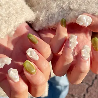 キラキラした空間や話すのが少し苦手な方🌿気を使わずゆっくり過ごせる空間で、ちゅるんやニュアンスなど可愛いデザインも楽しめます。ネイルが初めての方もお気軽にお越しください💅