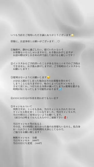 🐵たくさんの中からご覧いただきありがとうございます🐵✔️お気に入り登録【♡】がないとこちらからのメッセージが送ることが出来ません🥲ご予約の際はお気に入り登録をお願い致します💌✔️【すぐ予約】は空き状況を確認し、こちらからの折り返しメッセージでご予約確定となります。お休み中は予約確認にお時間がかかる為メッセージが遅くなる場合がございます🙇♀️