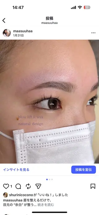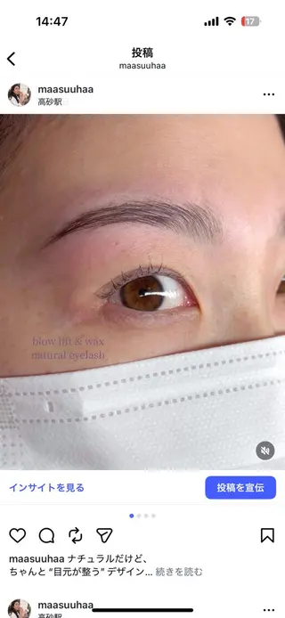 美容師歴9年×アイリスト2年。まつ毛エクステ、マツゲパーマ、眉毛ワックス、ブロウリフトお任せください。化粧品検定1級 ナチュラルからデザインまで、お目元に似合わせた提案が得意です。美容師歴9年、アイリスト歴2年です。現在は技術向上のためモデル様を募集しております。化粧品検定1級・パーソナルカラー上級の知識を活かし、お目元や骨格に合わせた似合わせ提案を大切にしています。ナチュラルで上品な仕上がりが得意ですが、デザイン性のあるスタイルも好きです。ご希望のデザインがある場合は、事前に画像を送っていただけるとスムーズです。※ミニモではアイメニュー・アイブロウメニューのみの受付となります。美容師としてのヘアメニューは受け付けておりませんのでご了承ください。・30分リペア、つけ放題90分はカウンセリン...