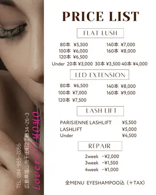 数多くあるサロンの中からご覧いただきありがとうございます🌼当日ご予約も承っておりますのでお気軽にご連絡くださいませ♡̖́-下記の注意事項のご確認よろしくお願い致します💭☑︎フラットラッシュ・・・太さ0.1/0.15、長さ9〜13mm、カールJ/C/D☑︎カラーエクステ・・・太さ0.15、長さ9〜13mm、カールC(※+1100円で変更可)☑︎パリジェンヌラッシュリフト・・・立ち上げ、カールなんでもお任せください^^#広島マツエク#広島まつ毛エクステ#広島まつエク#広島まつげパーマ#広島ラッシュリフト#広島美容#広島アイラ...
