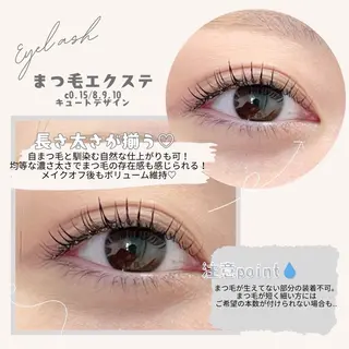 沢山のお店の中から当店をご覧頂きありがとうございます。☆当店は美容室の中にございますので、ヘアメニュー、ネイルメニュー等お気軽にお問い合わせ下さい。☆ミニモ特別価格にてご提供させて頂きます。☆お客様のなりたいまつ毛の形、どんな風に見せたいか、お好みのカール、長さ、太さ、等しっかりと担当スタッフがカウンセリングさせて頂きます。☆全マツゲエクステメニュー、まつ毛パーマメニュー、コーティング込みでさせて頂きます。☆オフをされる場合は、別途500円頂いております。☆施術者は全員、美容師免許保持者ですのでご安心してご来店下...