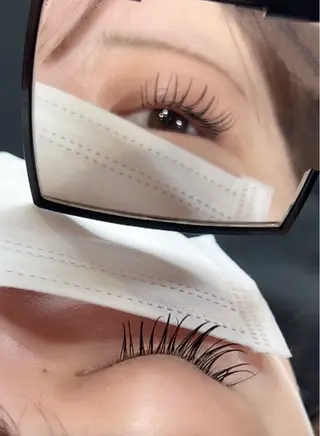 まつげエクステ、まつげカール、眉ワックススタイリングの施術となります。