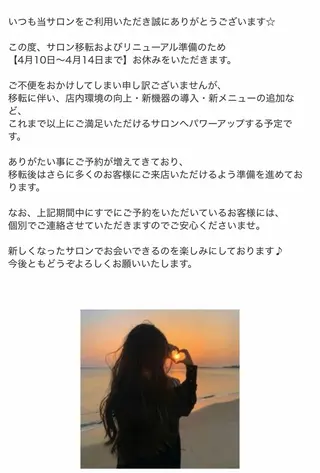 安心して楽しくご来店頂けるエステサロン✴︎脱毛✴︎人気の顔脱毛!お肌もワントーン明るくなりメイクのノリが良くなります✨ボディの脱毛もございます!★フェイシャル★人気の贅沢なオールハンドエステ¥5,500から針を使わずに無痛で有効成分をお肌細胞に浸透する美顔器エレクトロポレーションエステまで取り揃えております(*^^*)★ボディ★台湾式リフレクソロジー(足つぼ)15分¥1,700アロマオイルマッサージ(全身•上半身•下半身)60分¥5,000〜リンパを流すことにより芯から日頃の疲れを改善☆ブライダルエステ☆ブライダルメ...