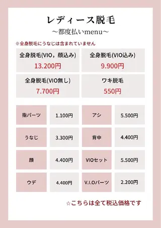 セルフ脱毛、セルフフォトは24時間年中無休で予約を取ることができます❣️そのため予約枠は24時間あけてありますがそれ以外の施術の営業時間は月、木、金、土の9時半〜18時までですのでご注意ください🙇♀️営業時間外、営業時間日以外の施術も承っておりますのでお問合せください!時間外料金500円〜になります。その他メニューも良いものを安くをモットーに少しでもお客さまの負担を減らし綺麗にできるよう精一杯やらせていただきます😌脱毛のジェルも拭き取り不要の美容成分が詰まったジェルを使ってますので脱毛をしながら美肌に✨ハーブピーリング...