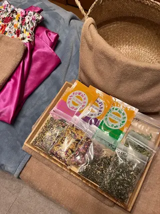 🔶〜黄土漢方よもぎ蒸しの流れ〜🔶【カウンセリング】カウンセリングシートにご記入して頂き、体調、体質をお聞きしてお悩みに合った漢方、[婦人科][ダイエット][美肌]からお選びして頂きます。※オプションメニューもございます【お部屋へご案内、お着替え】お洋服、下着、靴下を脱いで頂きよもぎ蒸し専用マントを素肌の上から直接被って頂きます。【よもぎ蒸しスタート】黄土で作られた椅子に座って頂き約30〜40分蒸されます。ご自身で座る位置や体勢を変えて頂きます。椅子の下は壺の中に100%無農薬のよもぎと数種類の漢方薬草を入れて、煮...