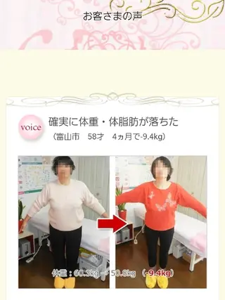 脂肪吸引よりも身体に負担がなく健康的にダイエットができます。また、美肌にも良いのでシワ・たるみなどが気になる方セルライトケアしたい方是非1度お立ち寄りくださいませ。