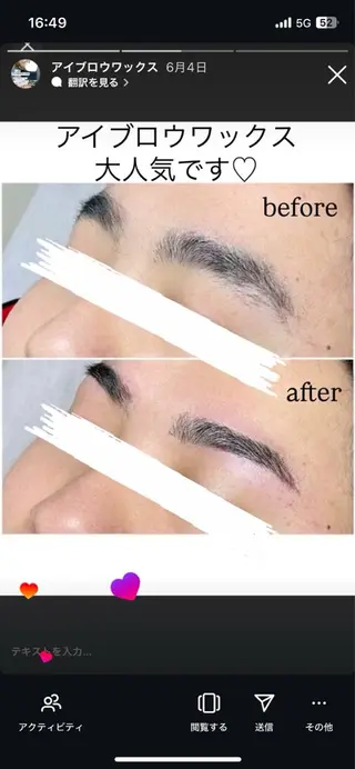 眉毛スタイリング、ララピール、ハーブピーリング、フェイシャルワックス、耳ツボジュエリー、脱毛と幅広く施術させていただいております☺️土日祝担当スタッフお休みのため、ご返信対応不可🙇
