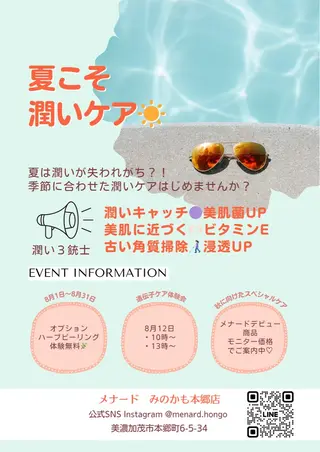 ❤︎美肌Aランクレッスン開催してます❤︎詳細はメッセージにて♡長年の肌の悩みはありますか?!子どもの頃は日焼けしたってすぐにすべすべのお肌に戻ったのに、、、実は、肌力が下がっちゃってるだけで、自分でキレイにする力は誰にでもありますよ🩷学校では習わないから普段のお手入れで肌を痛めちゃってる、、、いつものお手入れで起きちゃう肌悩みが、実は一番多いんですよ🤫ぜひ当店でお肌の悩みとさよならしませんか☺️⁉️こんにちは😃エステと聞くとちょっと敷居が高く感じませんかー⁉️実は今は健康管理の一つにもなっているエステティック!!お肌も心も...