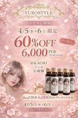 美容と健康を両方叶える💖女性専用プライベートサロンで幅広い層の方にお越し頂いております。大阪市心斎橋駅より5分の好立地♪完全個室で人目を気にせずリラックス🌿★ドライヘッドスパは丁度いい力加減でコリを揉み解します💆🏼♀️頭皮の血流改善で育毛促進◎その他にも、日常的な疲労・ストレスの軽減・眼精疲労・睡眠の質の改善・むくみなどにも効果があります✨★デコルテマッサージでは、デコルテのリンパを流しスッキリしたフェイスラインでリフトアップ効果❣️肩・首・背中のマッサージで肩こりの解消✨★痩身デトックスは、パワフルなクラッシュ吸引5段...
