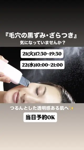20(火)◎【毛穴洗浄】つるんと透明感UP✨️ 【疲労回復】寝ても取れない疲れに✨\20〜60代の男女が、身体もお肌もスッキリさせたい方が集まるプライベートサロン//美容室2階の完全個室✨看板はありませんが、落ち着いた空間で安心してお過ごしいただけます。⸻🚗駐車場:39パーキング6〜9番⸻【施術内容】むくみ・重だるさ・肌のごわつきが気になる方におすすめ✨温熱ケア×美容機器×オールハンドで、施術後のスッキリ感・軽さを実感していただけます💆♀️フェイスラインやお肌のコンディションに合わせたケアも可能◎毎回お悩みに合わせて、丁寧に施術いたします。⸻🌿都度払い・回数コースありライフスタイルに合わせて無理な...