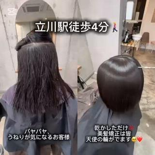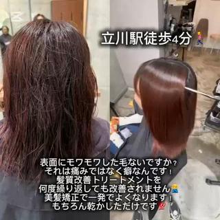 感動の質感!立川で出会える全国1%の技術 あなたのくせ毛・うねりの悩みを、特別な美髪ストレートで解決します。 私が使用するのは、全国導入率わずか1%の希少なブランドシナジーハーツの薬剤。 *全国1%の美容師しか扱えない特別な薬剤 * ダメージレスを徹底追及。ハイダメージ毛にも対応可能!