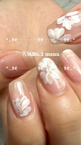 【本日15日(水)空きあり🌷】美フォルム仕上げで爪先からエレガントに✨手描きフラワーが人気 |初回オフ無料|自爪に優しいフィルイン導入店