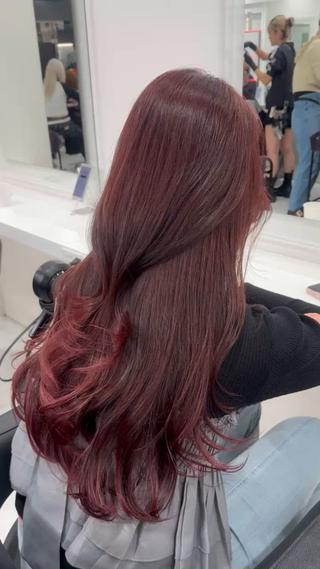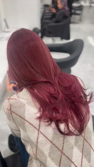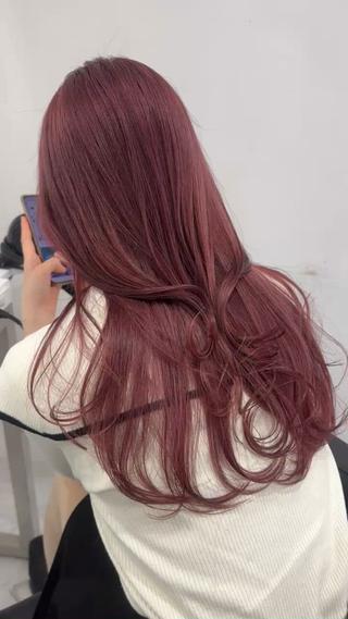 ブリーチなしで叶えます💫 チェリーレッド、ワインレッド、ピンクラベンダーたなど暖色ヘアならお任せ下さい🩷 就活のための暗染めも得意です🎀 艶々髪つくります🪄✨️