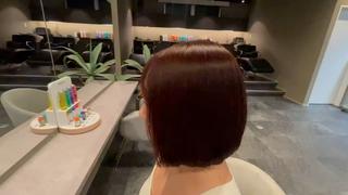 希望のワインレッドに染めていただきました!🍷✨️ 来店から30分待ったので、次回は対応が遅れる際は事前にお伝えいただけたら来店時間をずらせて嬉しいなと思います!