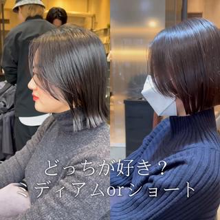 - 透明感カラー、切りっぱなしボブ、レイヤーカット、小顔カット、似合わせカット、スタイル提案、縮毛矯正