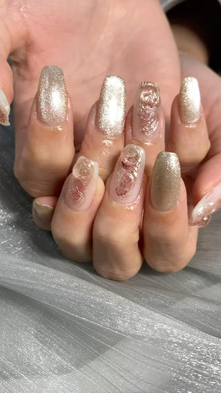 今回もとても素敵に仕上げていただきました! デザインの種類も毎回増えていて、いつもギリギリまで悩んでしまいますが、いつも優しく丁寧に対応していただいてます。アドバイスも的確で、毎回ネイルも心もリフレッシュさせていただいて、伺うのが楽しみです!
