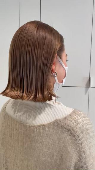 - 切りっぱなしボブ、韓国風ヘア、小顔カット、似合わせカット
