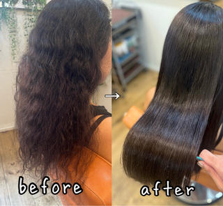 2回目のリピートで伺いました。 ブリーチをしているのですが、縮毛の根本リタッチ&全頭にトリートメントをしていただいてサラサラになり大満足でした。飲み物やお菓子などのお気遣いもありますし、楽しく会話してくださるので、縮毛で時間がかかる中でもリラックスして過ごせました。 またよろしくお願いします!